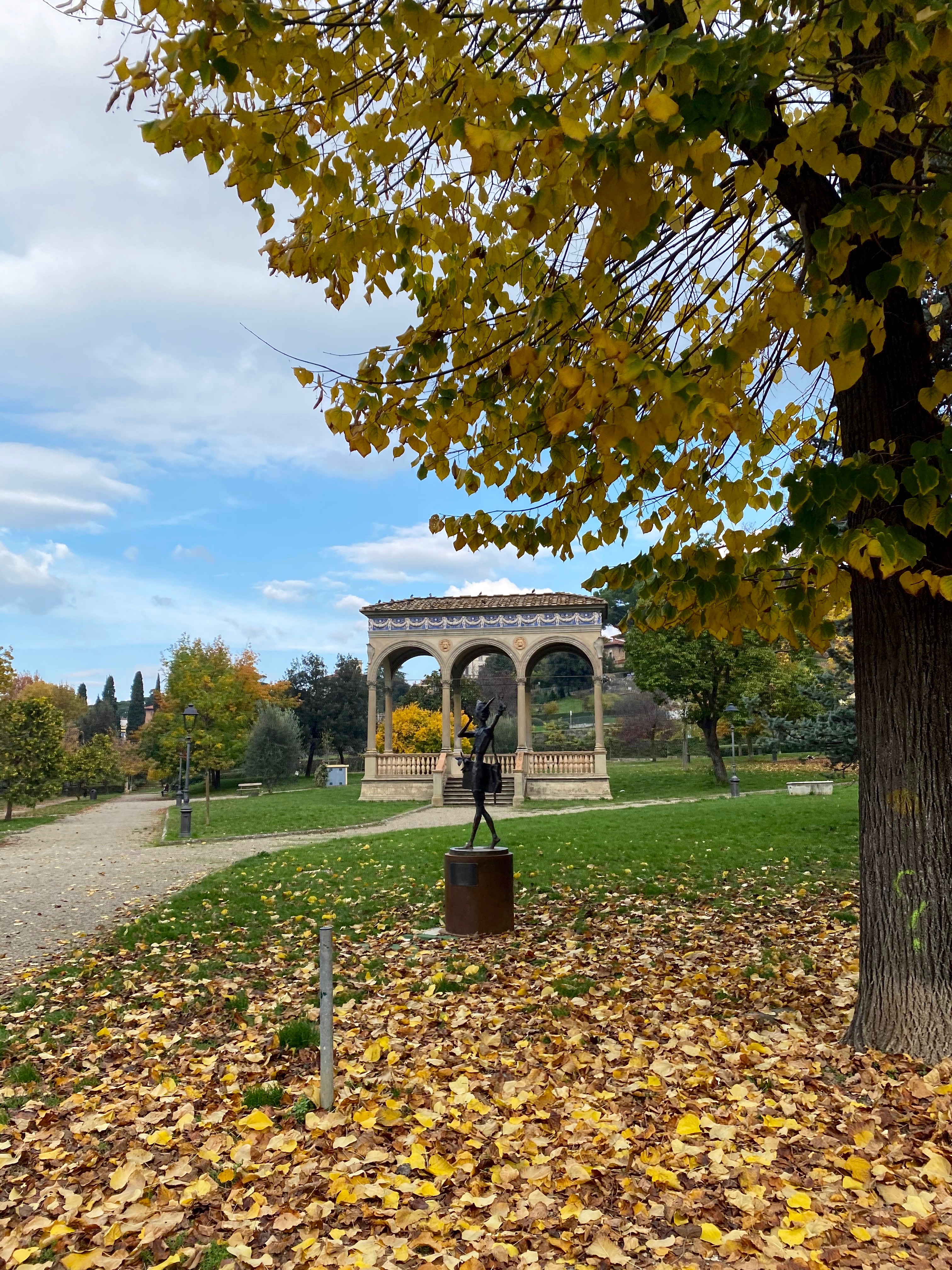 Per finire, questa settimana ho avuto la gioia (ogni tanto una ne arriva) di lavorare tre giorni fuori dall’ufficio. Ci ho quasi rimesso un paio di scarpe, e il telefono ha segnato 34km in tre giorni, ma giuro che mi vergogno ad ammettere quanto questa città continui a piacermi così tanto, tanto da non riuscire a staccarmene. E allora rovescio qui dentro un po’ del rullino, facendo seguire alcuni dei miei punti di vista distratti e sfuggiti, di una Firenze che è tornata deserta ancora una volta, ma stavolta in pieno autunno. Che non si sa mai.